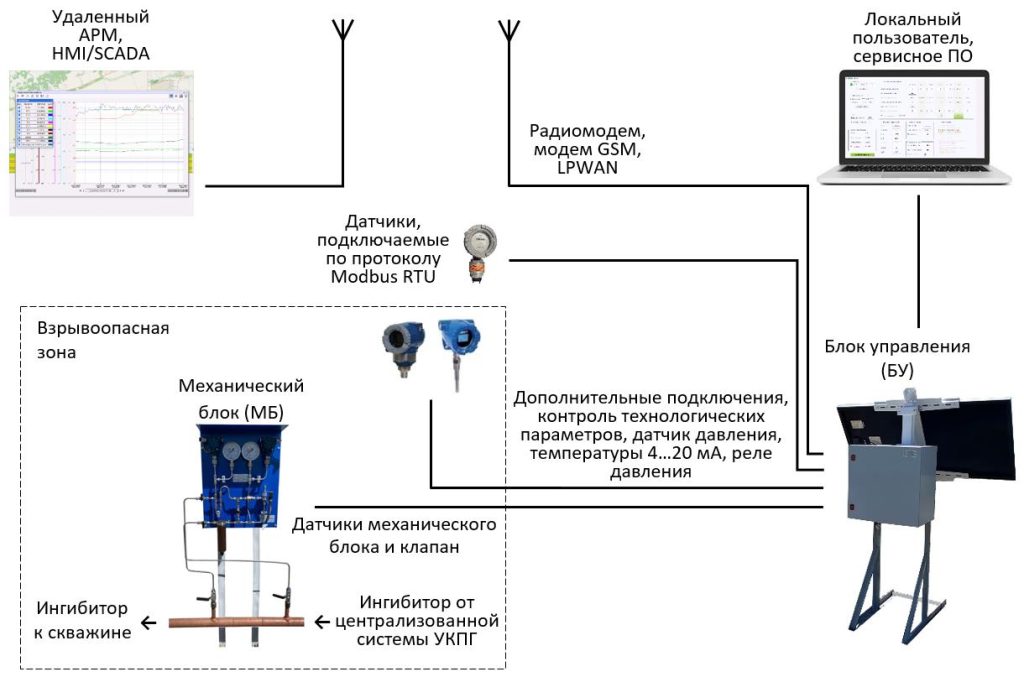 Разработанное для снижения стоимости развёртывания и совокупной стоимости владения решение может быть адаптировано к вашему производству. СПИ расширяет возможности контролируемой и управляемой подачи ингибитора, а также мониторинга за работой скважины в целом.